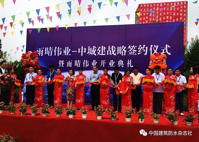2018年6月21日, 湖北雨晴偉業(yè)防水技術(shù)發(fā)展有限公司開業(yè)慶典暨中城建戰(zhàn)略簽約儀式活動(dòng)現(xiàn)場賓客云集,人頭攢動(dòng),場面火爆、掌聲如雷。這標(biāo)志著雨晴偉業(yè)從今天起正式的面向大眾,面向市場,也意味著雨晴偉業(yè)工廠的正式運(yùn)營。